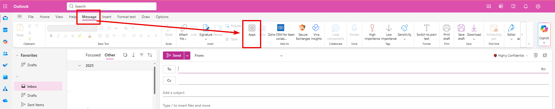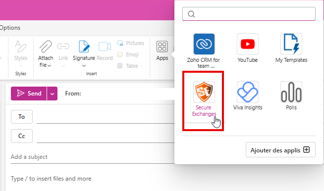 Once Secure Exchanges is installed and your license is activated in Outlook Web, you can send secure emails by following the steps below. Access Secure Exchanges Open Outlook Web and click “New message” to start composing your email. Then open the ...
