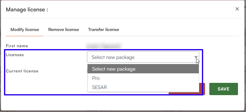 How do I modify, withdraw, or transfer a user's license?