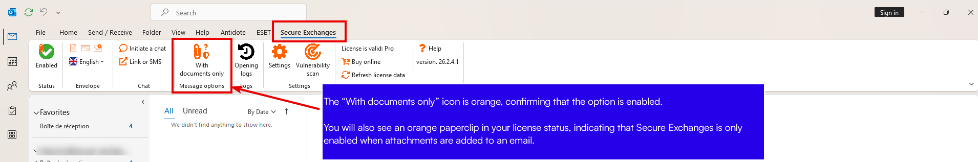 This article explains how to send a secure email with Secure Exchanges in Microsoft Outlook, as well as the options available before sending. Prerequisites: Secure Exchanges must be installed and enabled in Outlook. When Secure Exchanges is correctly ...