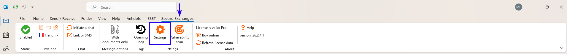 Secure Exchanges offers several configurable settings directly within Outlook to tailor the security level, sending behavior, and signature management to your needs. This article explains each settings tab , specifying its purpose and how to use it.