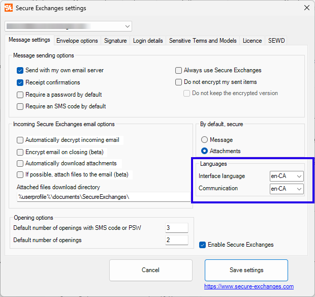 Interface language : Secure Exchanges display language
