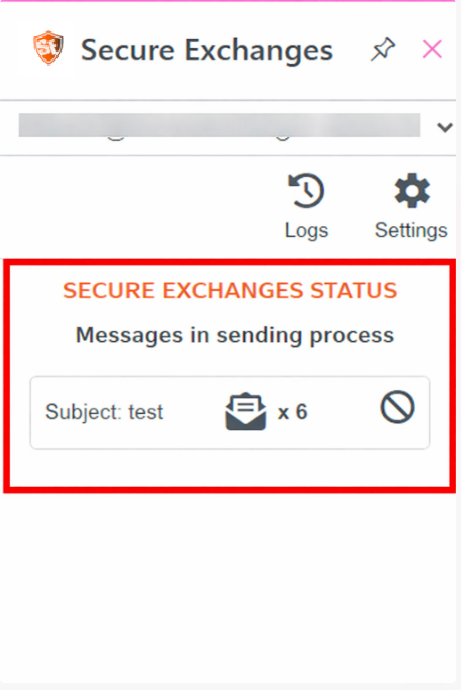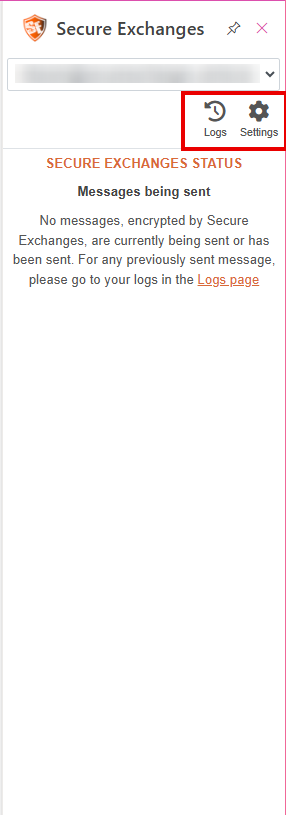 This window also provides shortcuts to Secure Exchanges logs and settings , allowing you to view detailed sending history and adjust your preferences as needed.