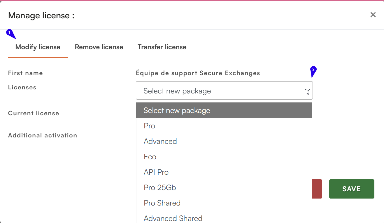 Click Modify License.