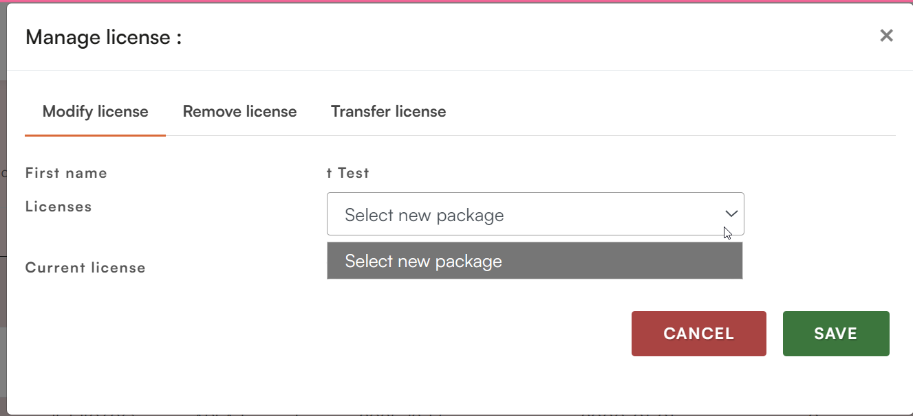 If the person you wish to assign the licence to does not appear, you must first create their user profile in your account. Once created, they will appear in the list and you will be able to assign the licence.