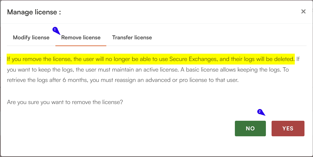 Result: The licence is freed and becomes available for reassignment.