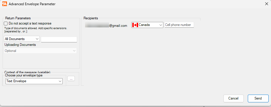 This envelope offers a superior level of control and advanced security options. Once the advanced envelope is inserted and at the moment when You will click on "Send" , several options can be configured: