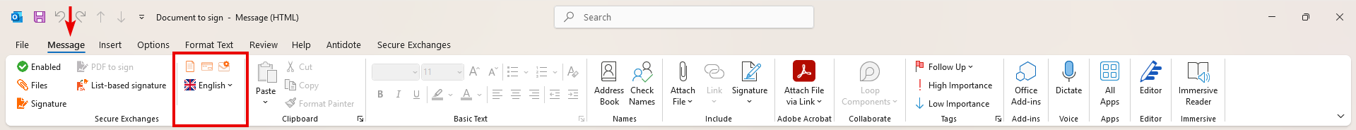 Once the configuration is complete, click "Send" . The envelope will then be transmitted with the chosen security settings.