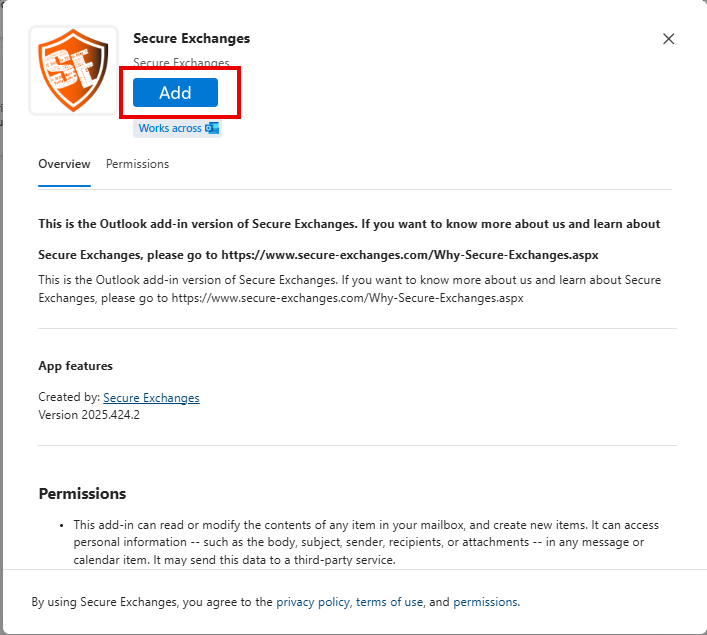 This procedure applies only to Outlook Web and Outlook New users. If you are using Outlook Classic (legacy version) , do not deploy this version of Secure Exchanges. Instead, follow the installation procedure for Outlook Classic. The installation ...