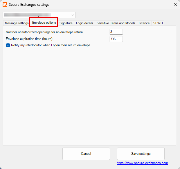 This tab configures the default behavior of secure envelopes.