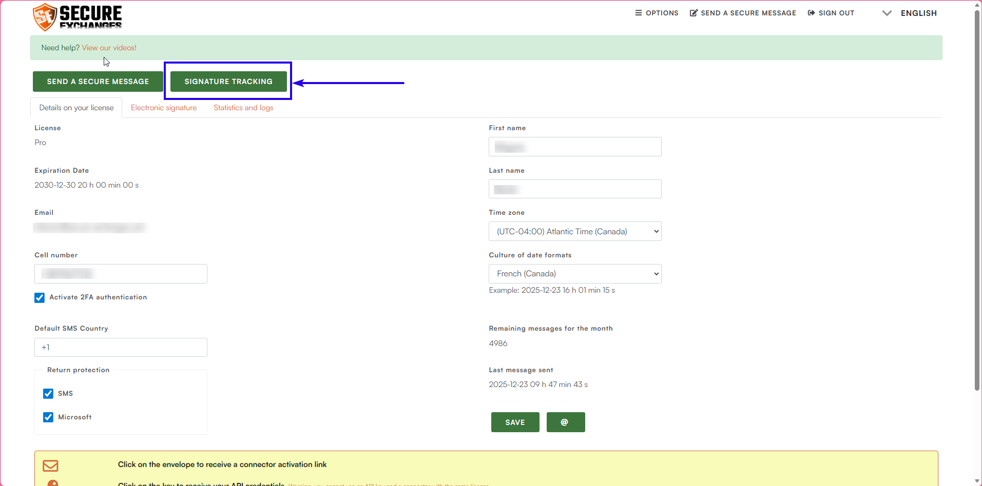 The logs in the Secure Exchanges online portal allow you to view all activities related to your messages: sends, opens, downloads, signatures, IP addresses, and more. You can also delete a message before it expires and export your logs for archiving ...