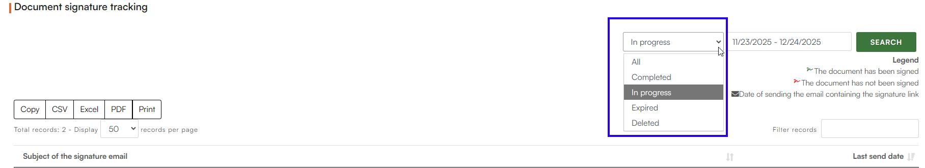 To resend a document for signature to a recipient who has lost or deleted the original email, you must have: a Pro license a SESAR license SESAR version 23.01.0706 or later This feature is available in the online portal under “Signature tracking.” ...