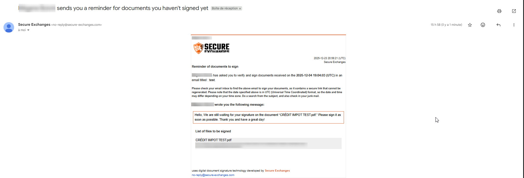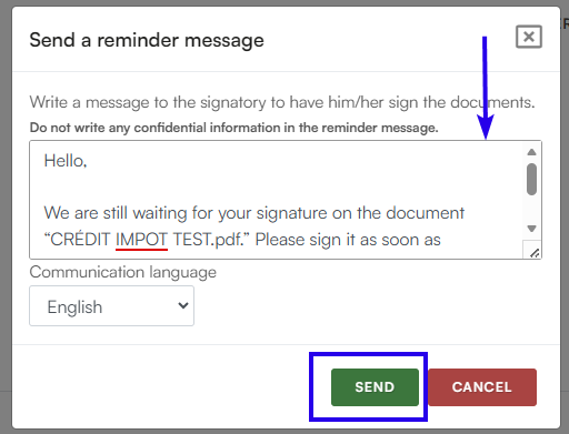 If a signer has not completed the signature, you can send them a reminder directly from this interface.