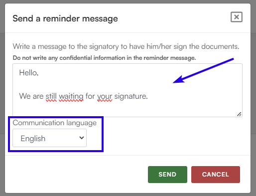 - You can choose the language of communication for the reminder.