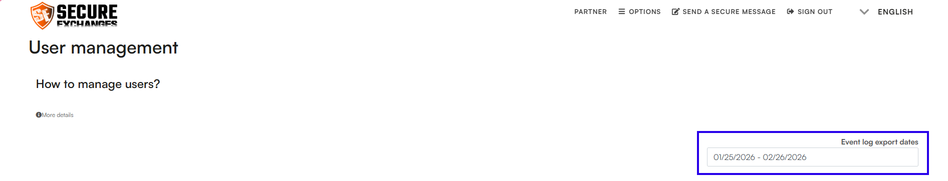 The event log allows administrators to track actions performed by users in Secure Exchanges.