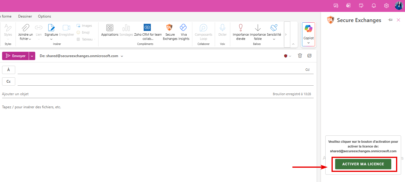 Si l'icône de Secure Exchanges n'apparaît pas, suivez les instructions mentionnées ici pour ajouter l'application.Choisissez l’adresse courriel ou la boîte partagée que vous souhaitez activer.