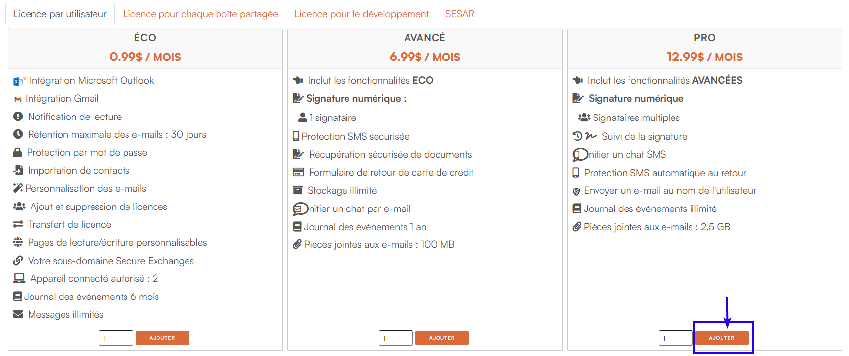 Avant d’ajouter ou d’assigner des licences, vous devez vous connecter au portail en ligne de Secure Exchanges.