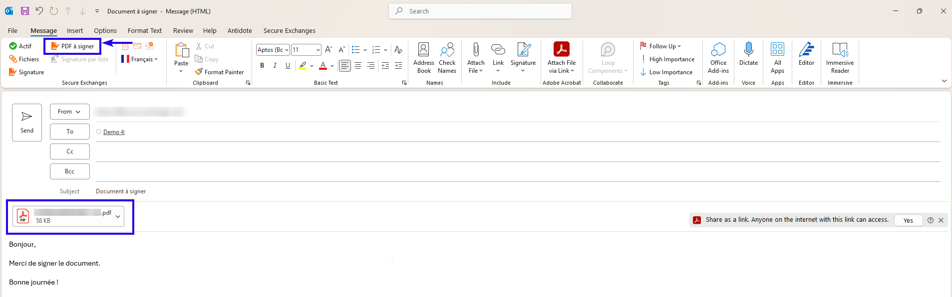 Faire signer un document dans Microsoft Outlook avec Secure Exchanges