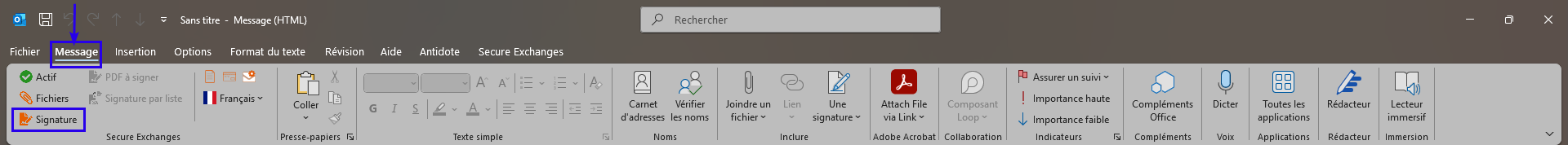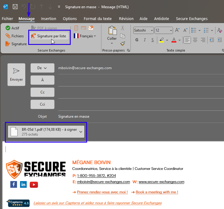 Créer une signature par liste (signature en masse) avec Secure Exchanges dans Outlook Classique