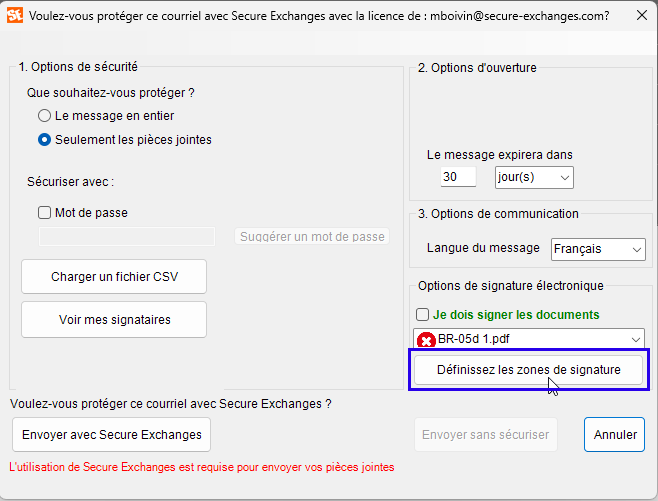 Cliquez sur "Envoyer avec Secure Exchanges"