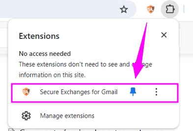 - L’extension Secure Exchanges apparaît dans la zone des extensions, en haut à droite de la fenêtre du navigateur.