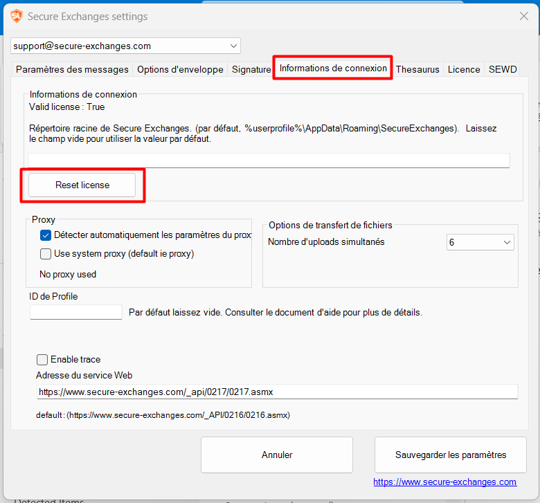 3) Vous devez ensuite récupérer votre licence toujours dans l'onglet de Secure Exchanges.