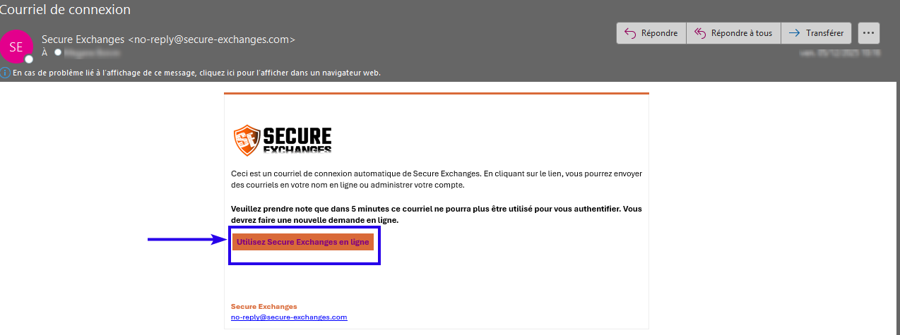 - Vous recevrez un message contenant un lien intitulé : « Utilisez Secure Exchanges en ligne »
