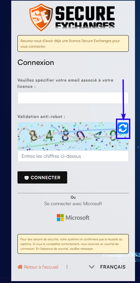 Si aucun courriel n’est reçu, recommencez le captcha attentivement.