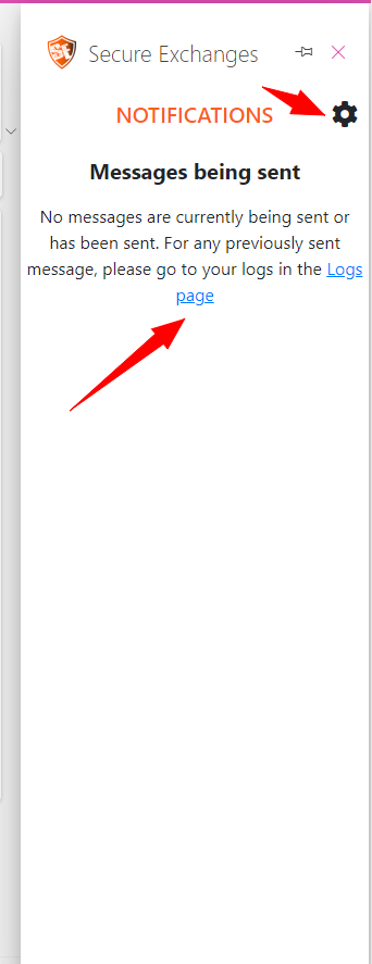 3. Une fenêtre de notifications de Secure Exchanges s'ouvrira. Pour l'épingler à votre interface Outlook Web, afin d'en bénéficier, cliquez sur l'icône en forme de punaise.