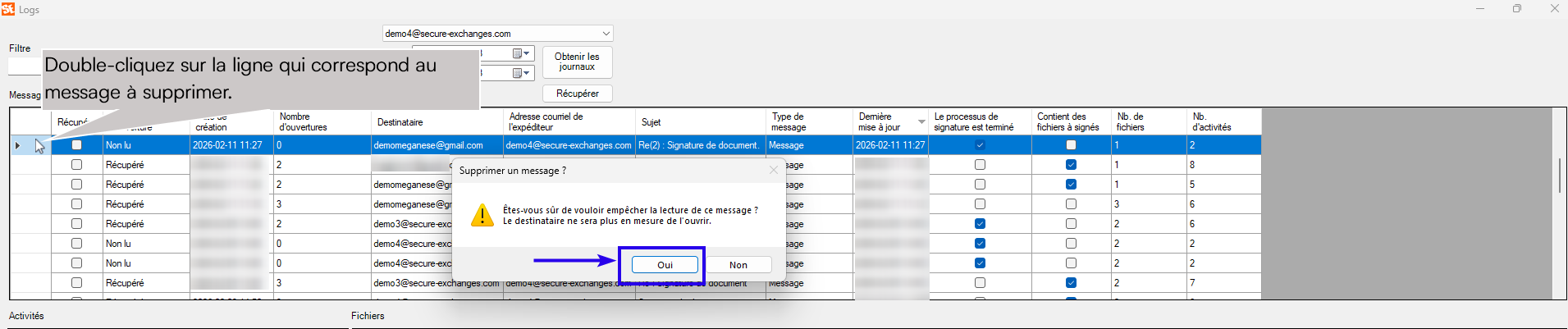 Cliquez sur « Oui » pour empêcher la lecture par le destinataire.