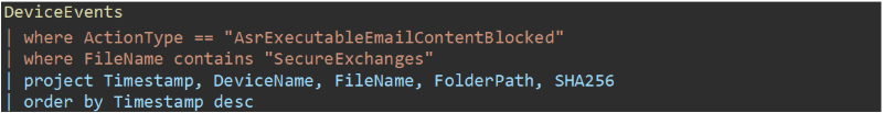 | where ActionType == "AsrExecutableEmailContentBlocked"