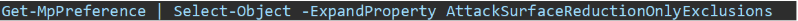Get-MpPreference | Select-Object -ExpandProperty AttackSurfaceReductionOnlyExclusions